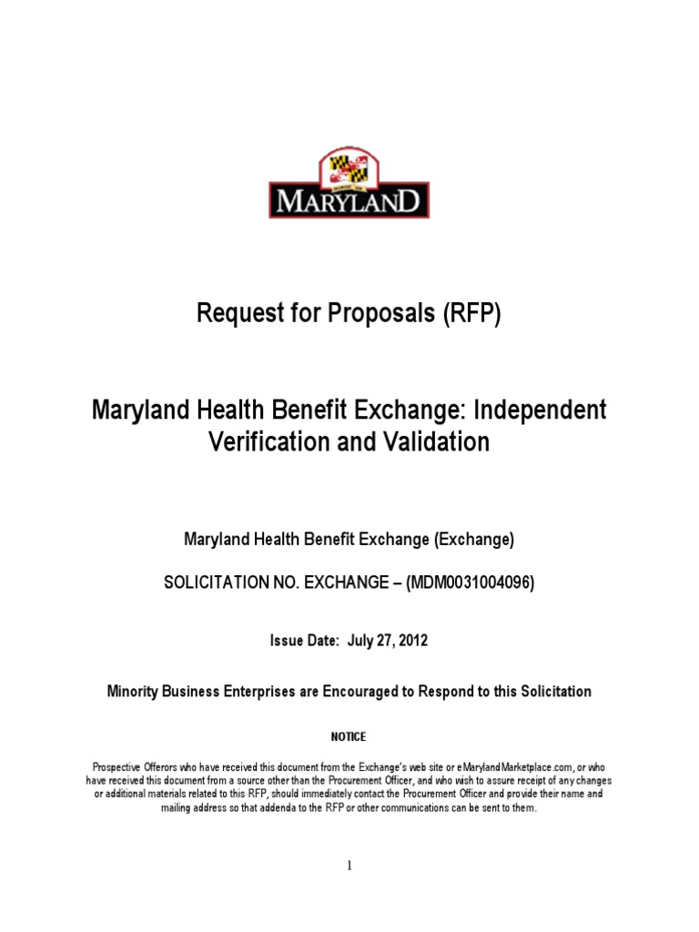 Md Health Benefit Exchange Ivandv Rfp Final 1 1 Patient Protection And Affordable Care Act American Government