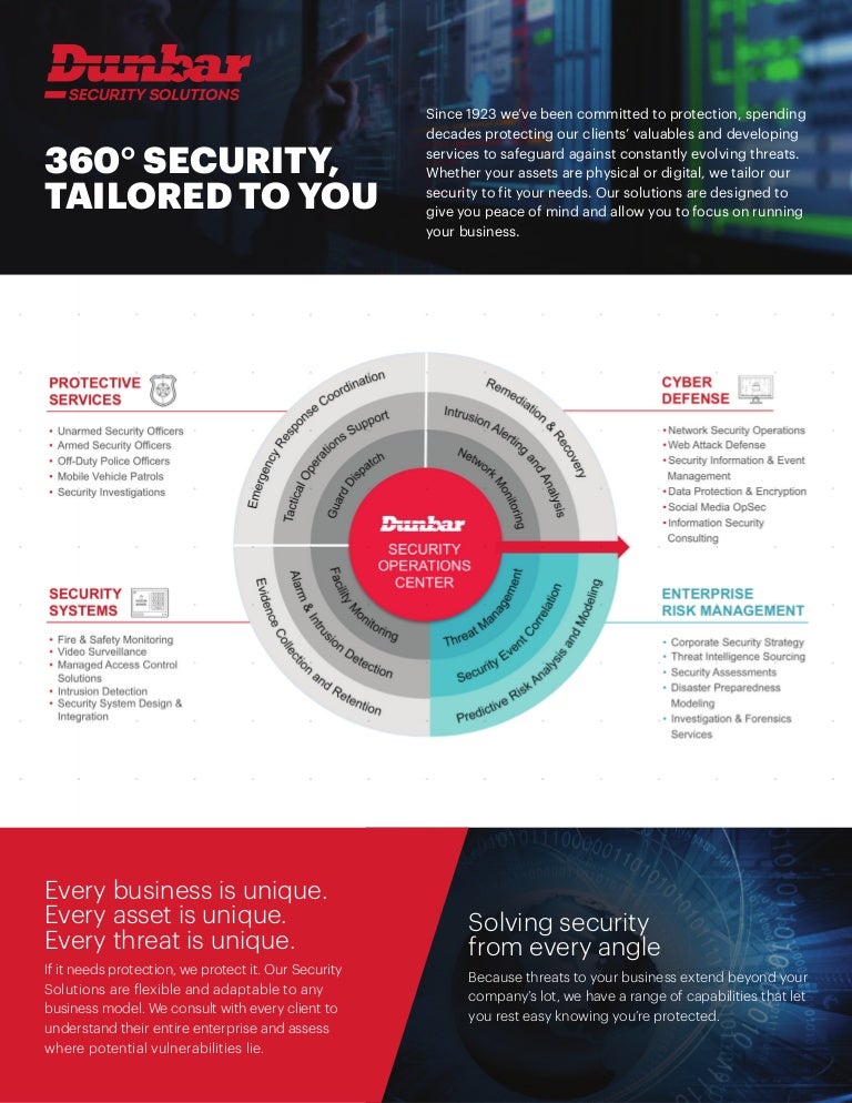 235 Schilling Circle Suite 109 Hunt Valley MD 21031. These factors are similar to those you might use to determine which business to select from a local SuperPages directory including. Dunbar Security Solutions DSS is devoted to crafting customized security plans that integrate security personnel services and electronic security systems to give our clients 360-degree protection.