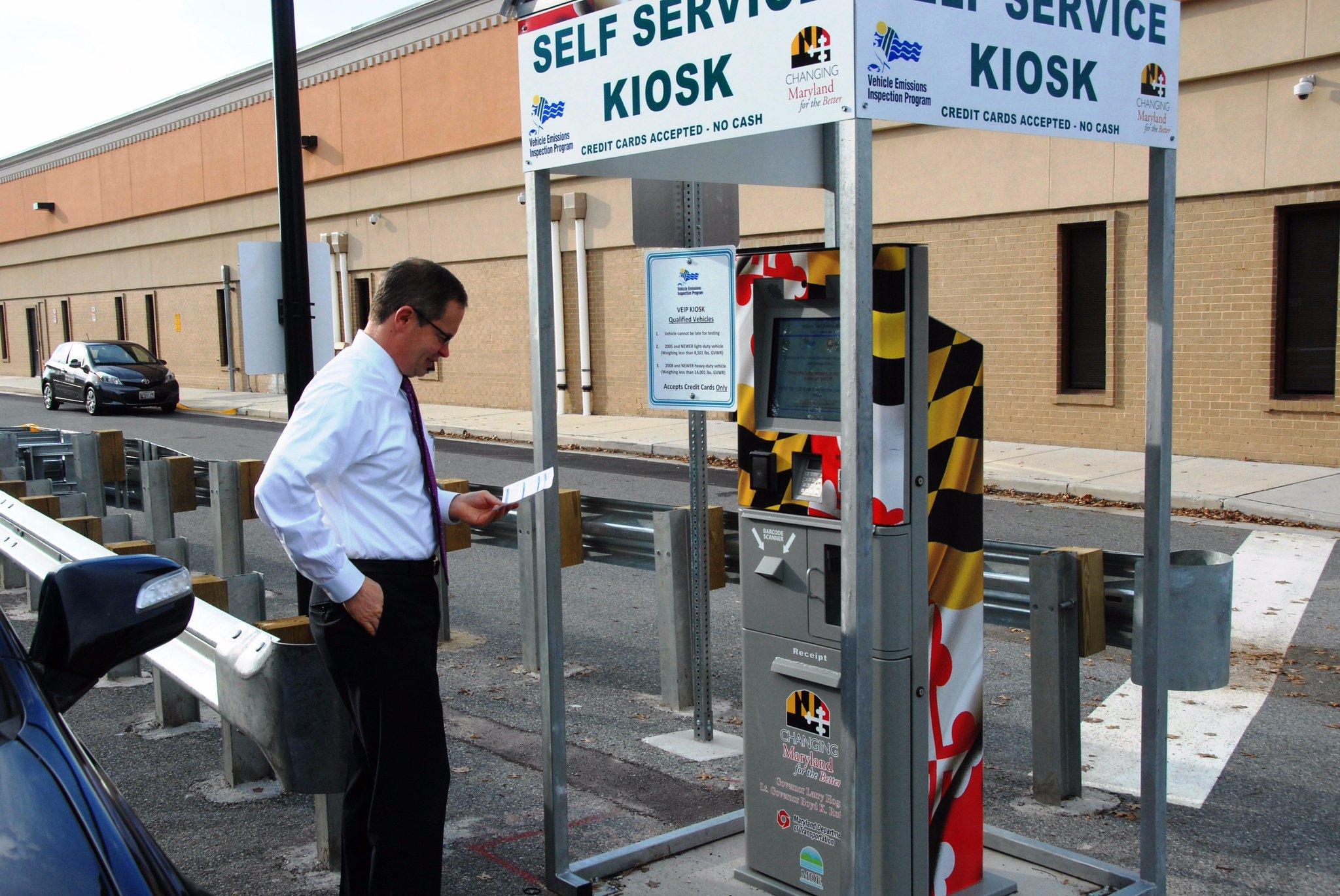 Mva emissions self service kiosk. Hours - Monday-Wednesday Friday 830am to 430pm Thursday 830am to 630pm for all services and every Saturday 800am to noon for Drivers License Services Only. The VEIP testing network consists of 18 centralized inspection stations and 10 self-service kiosks located in 13 counties and Baltimore City. To use them drivers pull up to the kiosk.