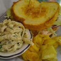 Reuben on grilled dark rye bread Corned beef sauerkraut Swiss cheese Aunt Tillies Thousand Island dressing served with potato or macaroni salad and chips. Get delivery from Aunt Tillies Deli super-fast to your door. Or is it on Friday when they have home made Clam Chowder rich creamy and no shortage of clams.